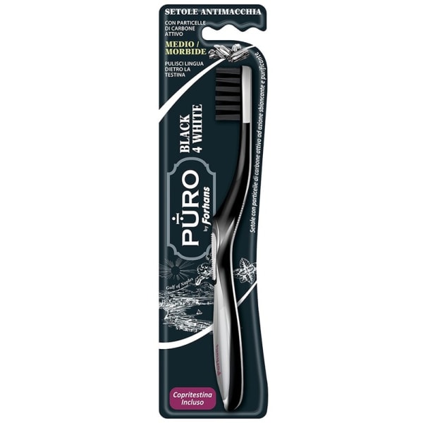 • Spazzolino antiplacca con particelle di carbone attivo (setole di colore nero), per un’azione sbiancante, ma gentile e non abrasiva sullo smalto dei denti.